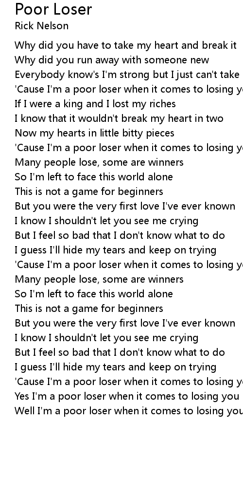 'Cause I'm a poor loser when it comes to losing you |