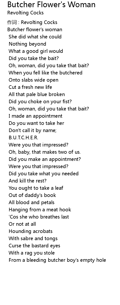 | Song | Butcher Flower's Woman |
