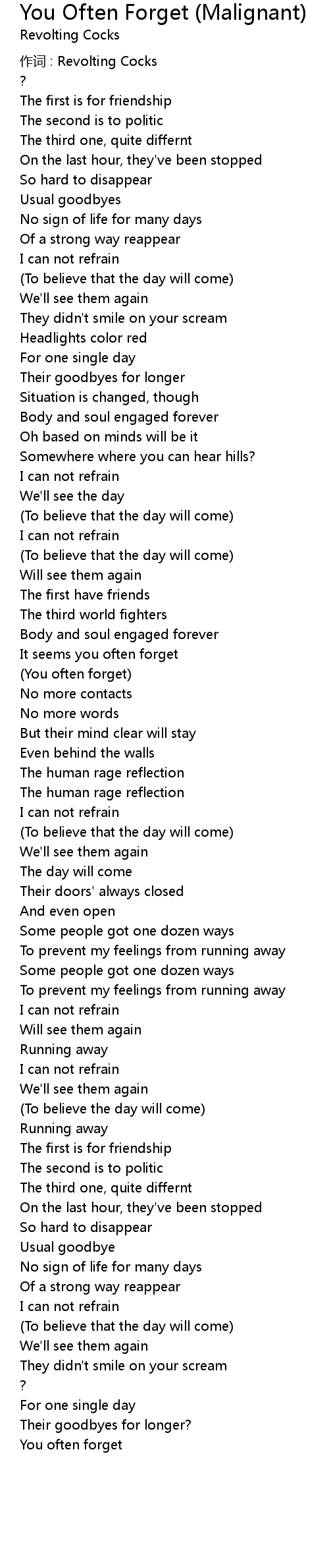 | Song | You Often Forget (Malignant) |