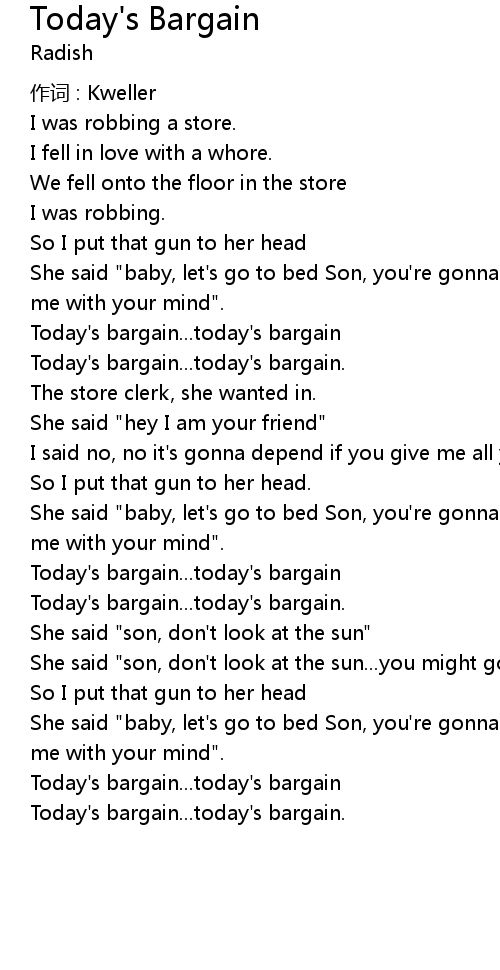 | She said "baby, let's go to bed Son, you're gonna go blind if you keep fucking me with your mind". | |
