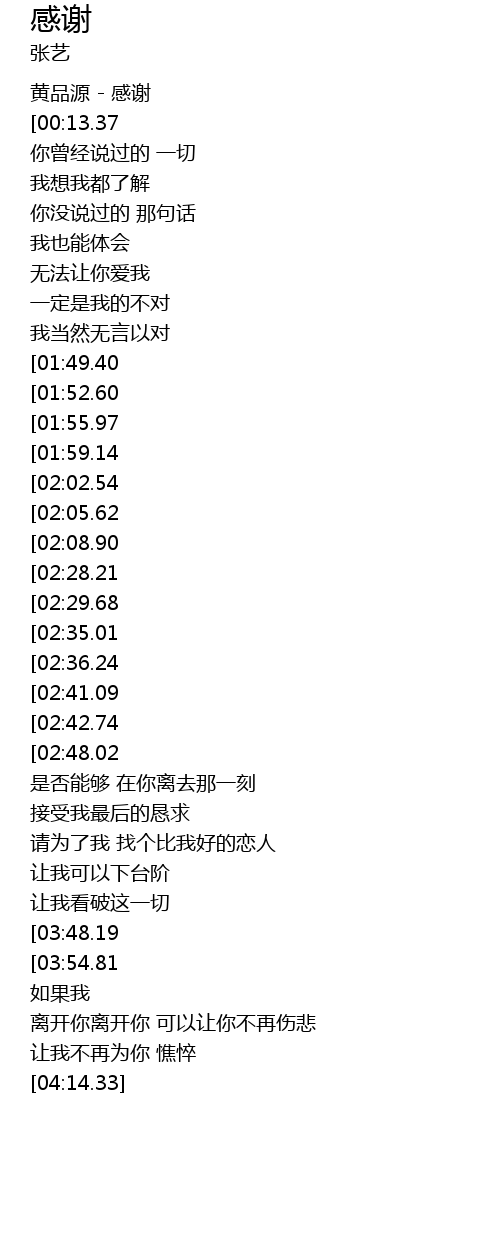 | [01:29.21][02:48.02][04:06.49] | 我只能说一声 感谢 |