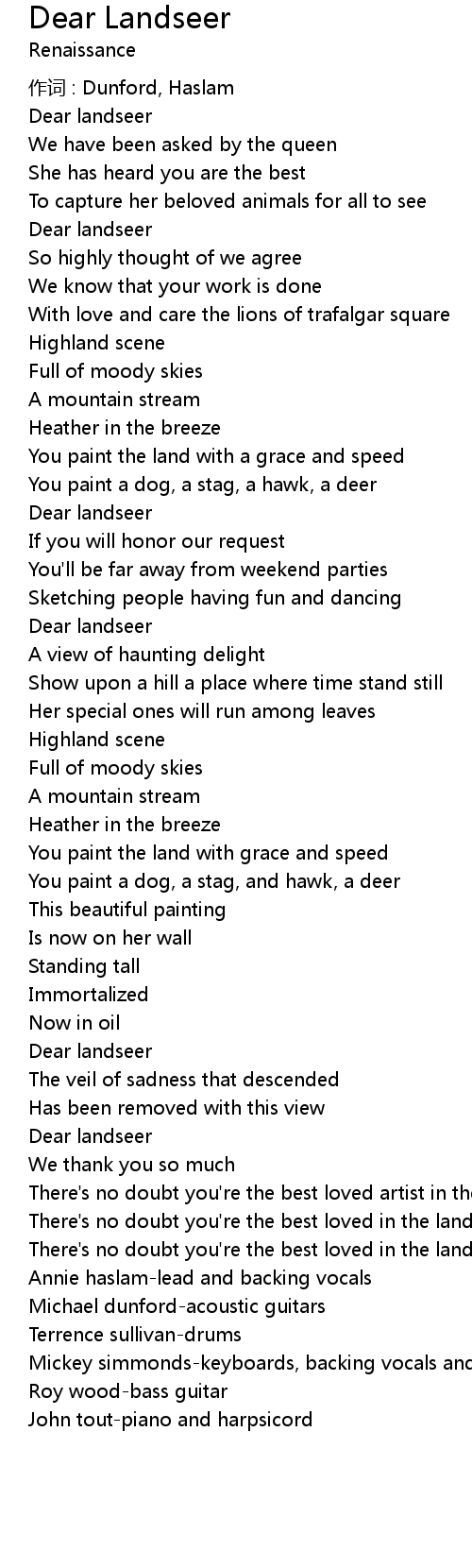 | Song | Dear Landseer |