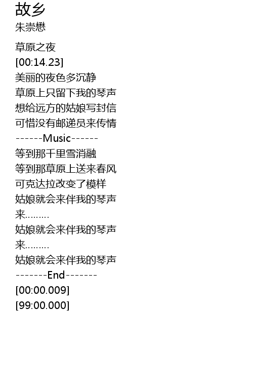 | [00:33.04] | 草原上只留下我的琴声 |