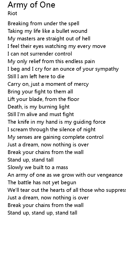 An army of one as we grow with our vengeance |