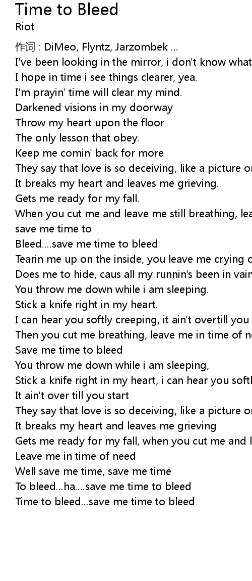 | When you cut me and leave me still breathing, leave me in time of need....well save me time to | |