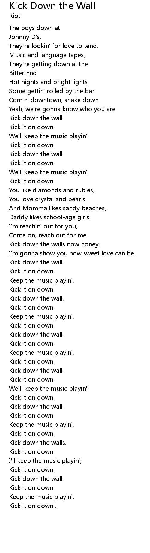 | Kick down the wall, | |