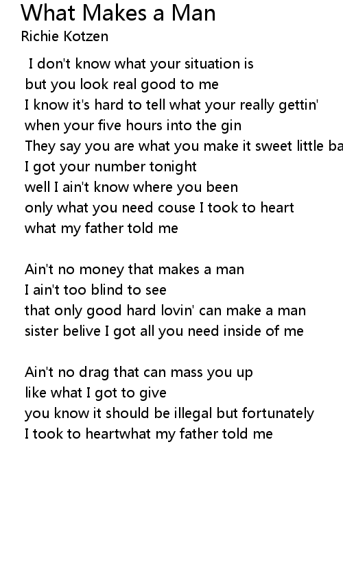 that only good hard lovin' can make a man |