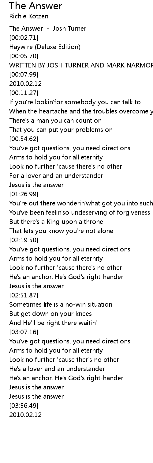 WRITTEN BY JOSH TURNER AND MARK NARMORE |