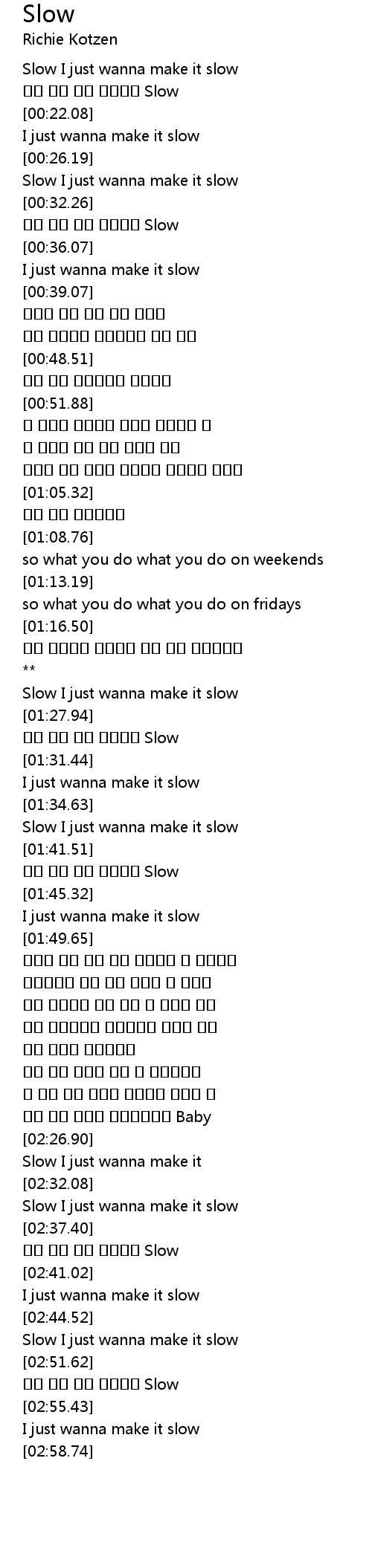 | [02:33.59] | Slow I just wanna make it slow |