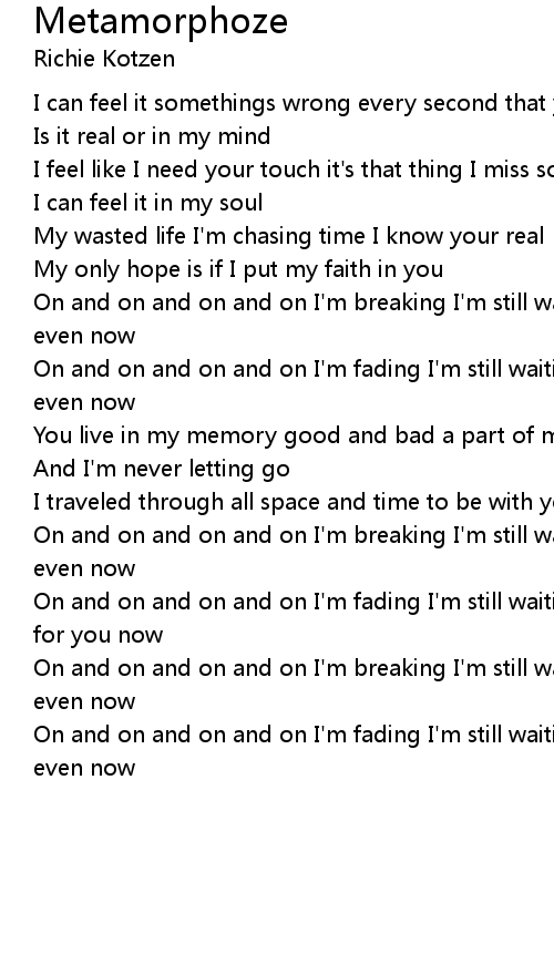 On and on and on and on I'm breaking I'm still waiting |