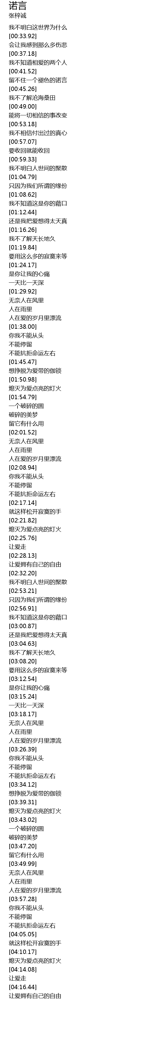 | [00:42.33] | 留不住一个褪色的诺言 |