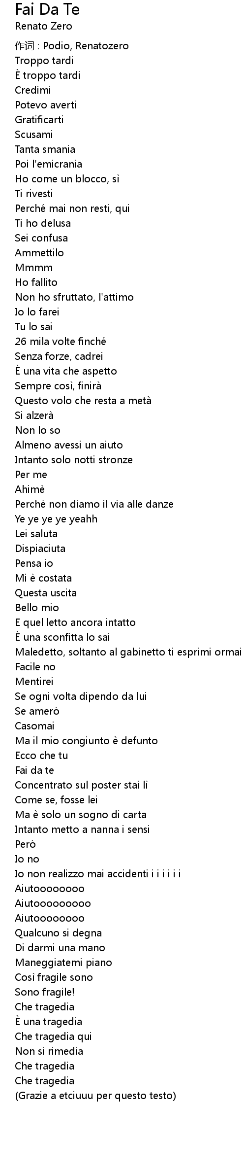 | 作词 : Podio, Renatozero | |
