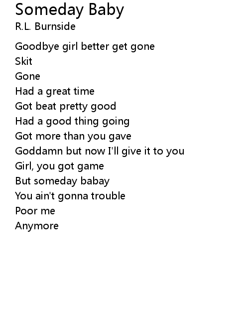 | Song | Someday Baby |