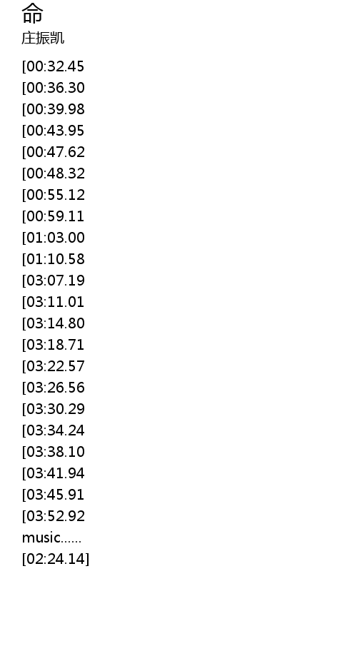 | [02:04.99] | music...... |