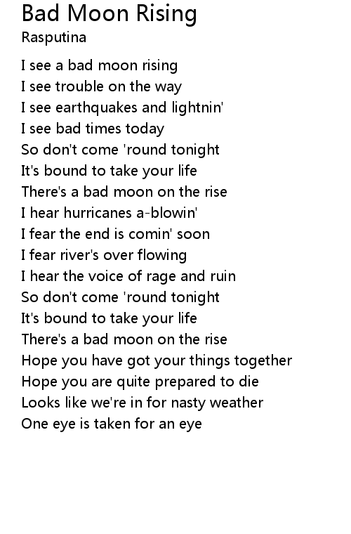 There's a bad moon on the rise |