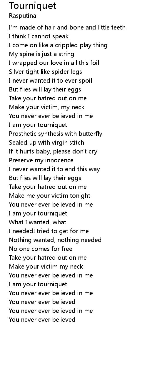I am your tourniquet |