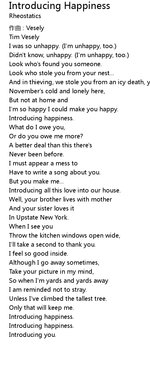 | Song | Introducing Happiness |
