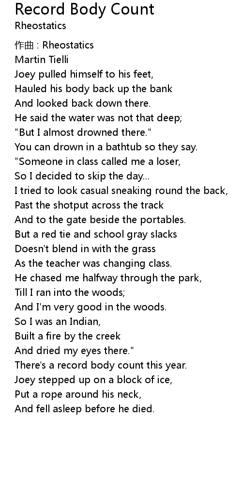 | Song | Record Body Count |