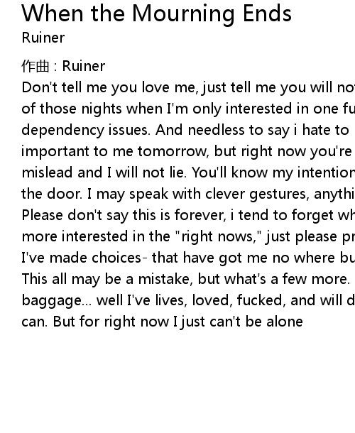 | Song | When the Mourning Ends |