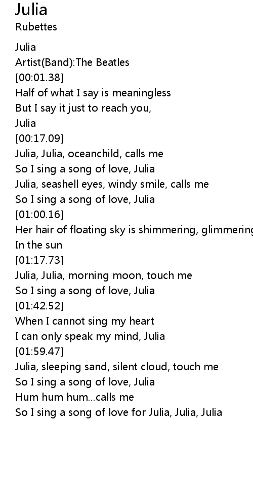 [00:37.21] Julia, seashell eyes, windy smile, calls me