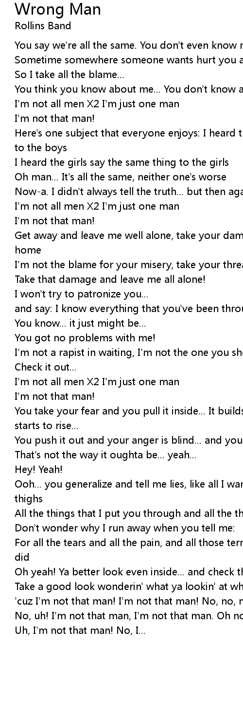 | 'cuz I'm not that man! I'm not that man! No, no, no, I'm not that man! | |
