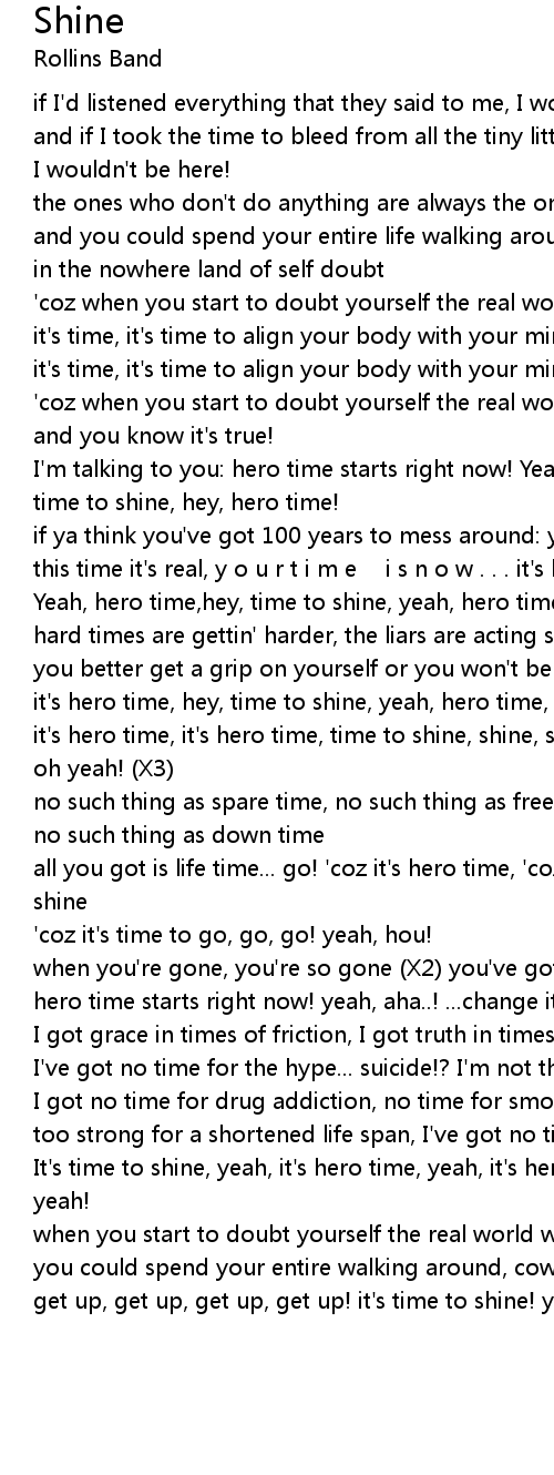 | it' s hero time, hey, time to shine, yeah, hero time, yeah, hero time, yeah! | |