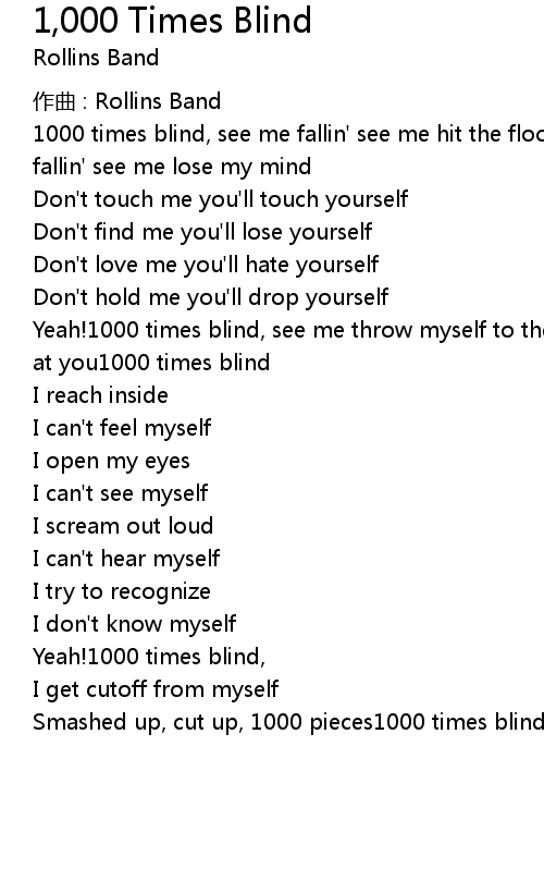 | Yeah!1000 times blind, see me throw myself to the floor1000 faces lookin' back at you1000 times blind | |