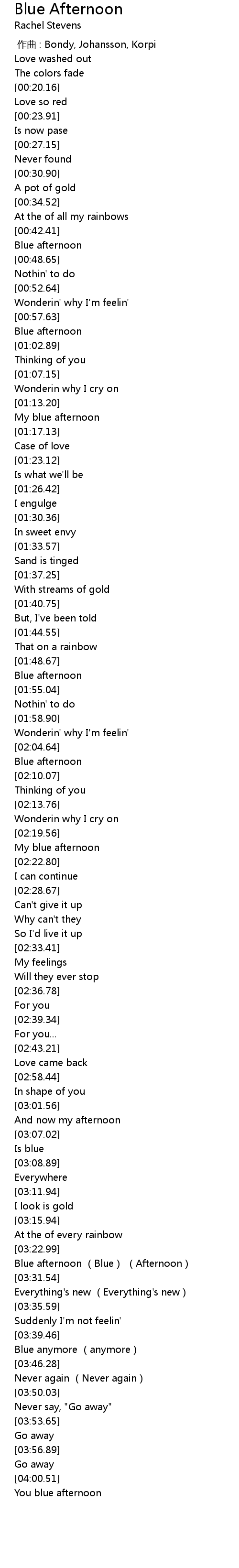 | [03:26.42] | Blue afternoon (Blue) (Afternoon) |