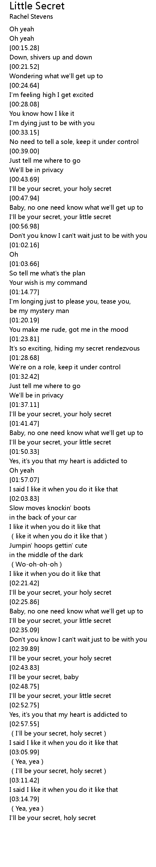 | [02:49.63] | I'll be your secret, your little secret |