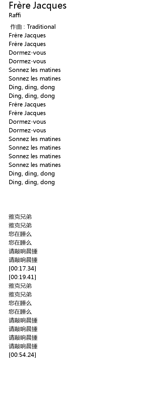 | [00:05.38] | Frè re Jacques |