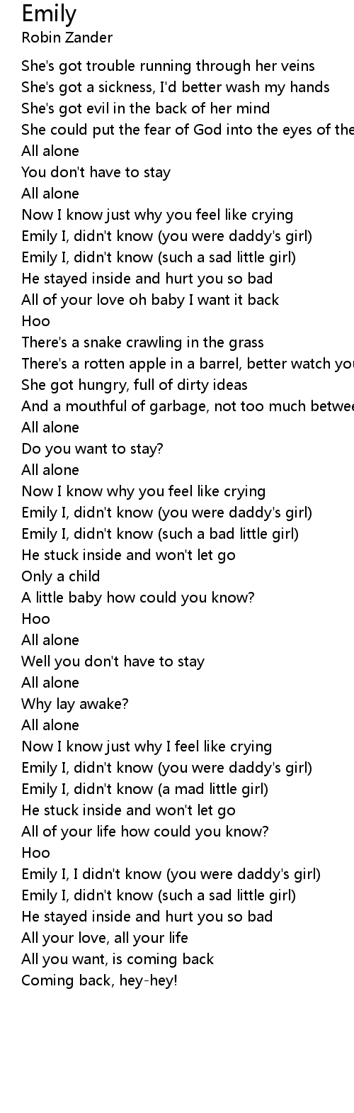Emily I, I didn't know (you were daddy's girl) |