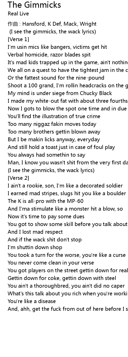 | I see the gimmicks, the wack lyrics | |