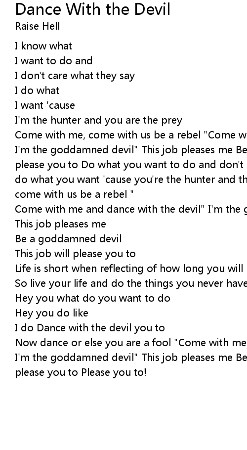 Come with me and dance with the devil" I'm the goddamned devil" |