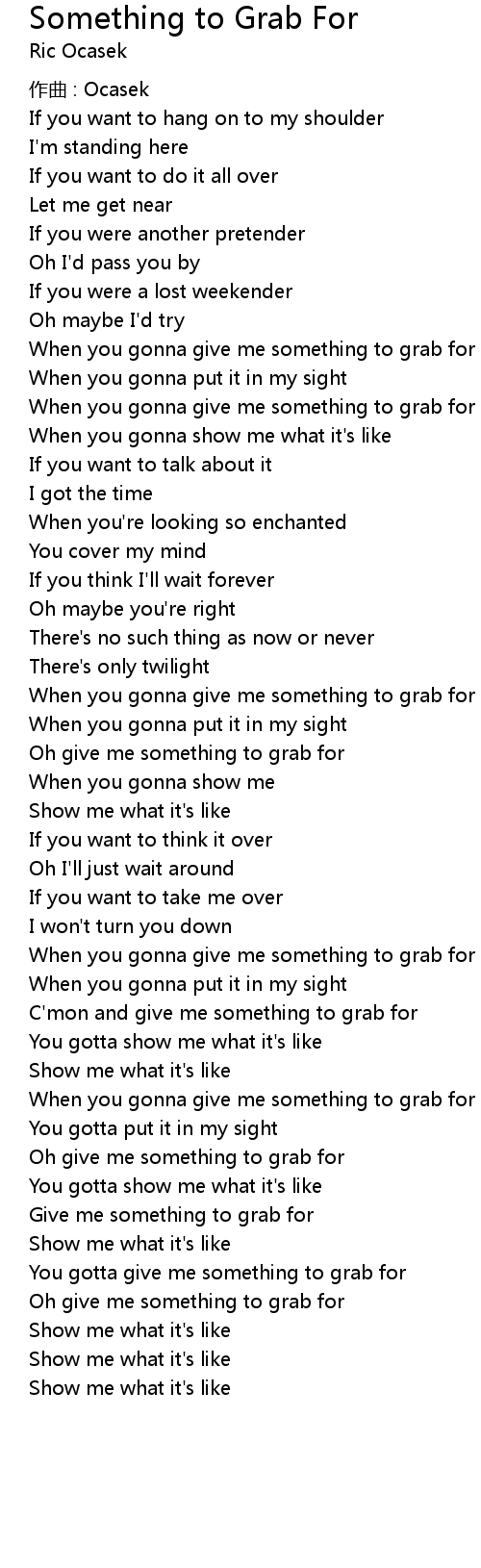 | When you gonna give me something to grab for | |