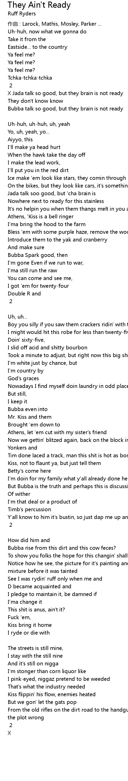 | Me and 'Kiss is necessary, that much you can count on, yeah [Chorus] 2 | |