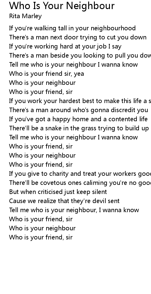 Tell me who is your neighbour I wanna know |