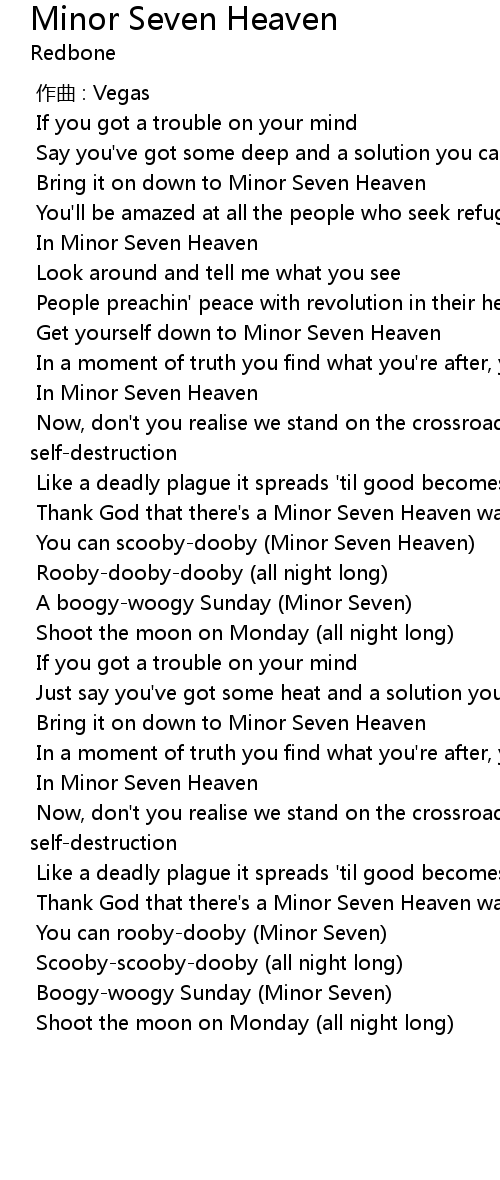 | [00:34.887] | Bring it on down to Minor Seven Heaven |