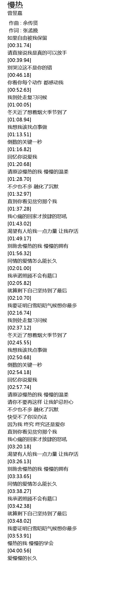 | [03:29.59] | 别施舍慢热的我 慢慢的拥有 |