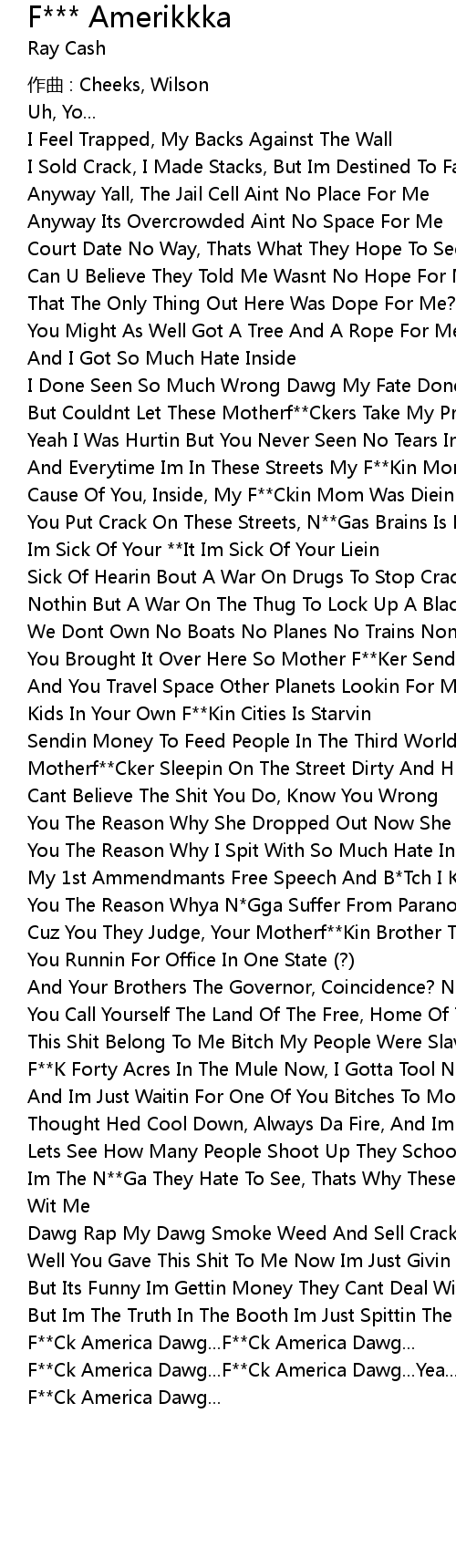 | F Ck America Dawg... F Ck America Dawg... Yea..... F Ck America Dawg... | |