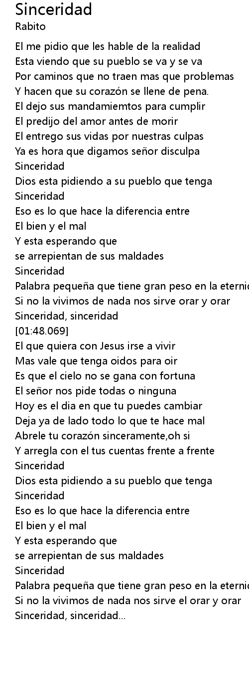 | [01:41.336] | Sinceridad, sinceridad |