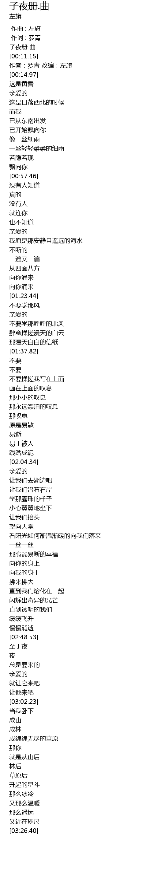 | [00:13.41] | 作者:罗青 改编:左旗 |