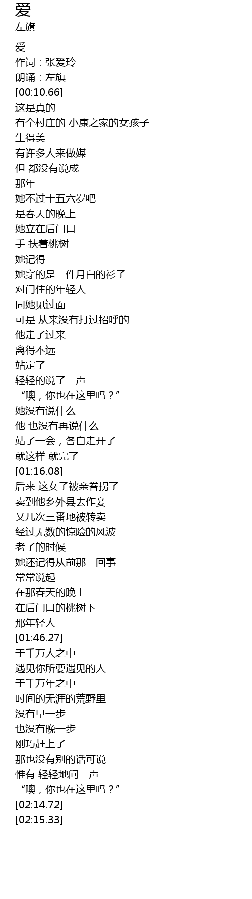 | [00:09.53] | 朗诵:左旗 |