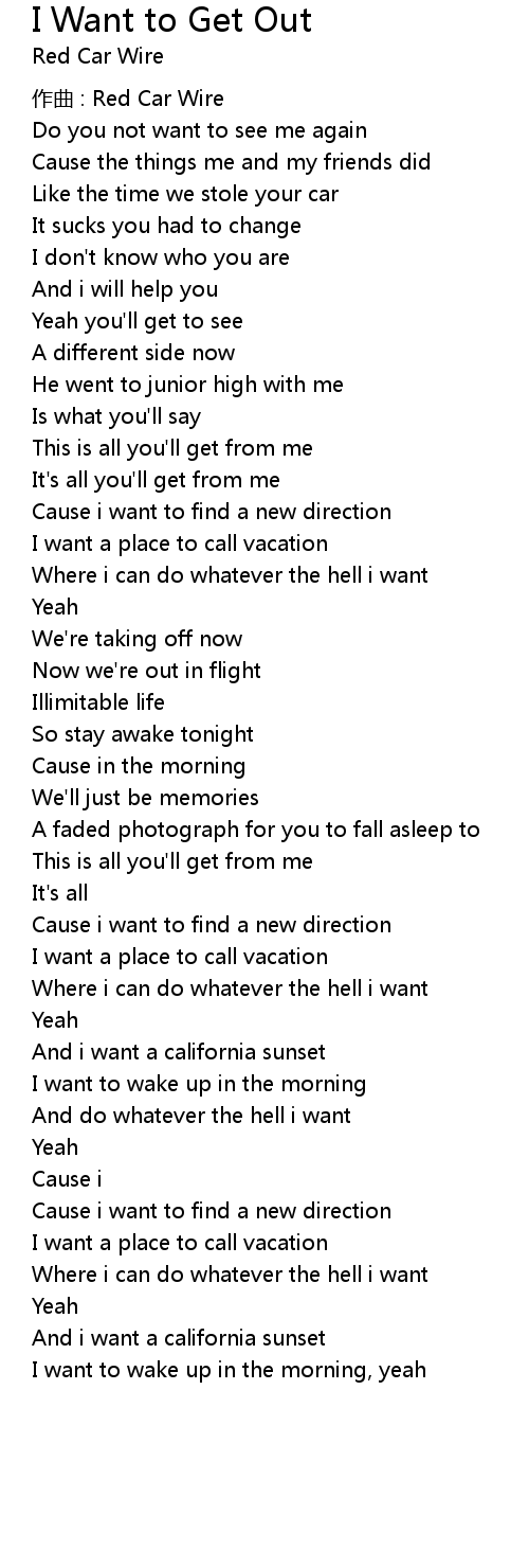 | Song | I Want to Get Out |