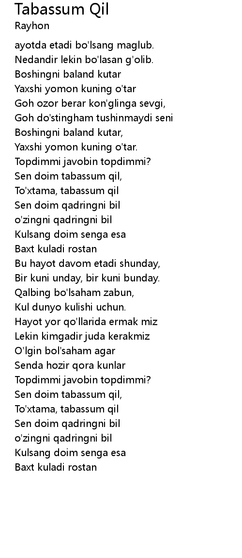 Sen doim tabassum qil, |