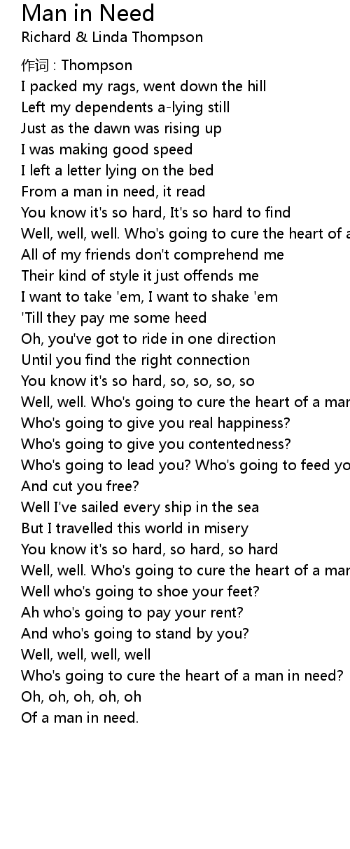 | Well, well. Who' s going to cure the heart of a man in need? | |