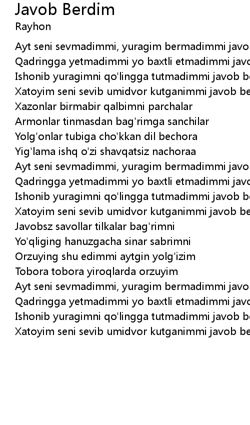 Ayt seni sevmadimmi, yuragim bermadimmi javob ber |