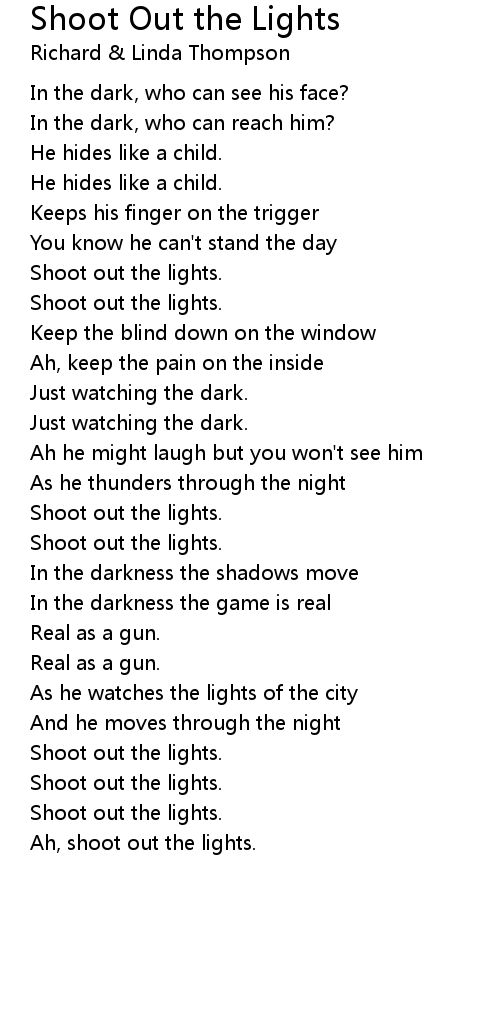 Shoot out the lights. |