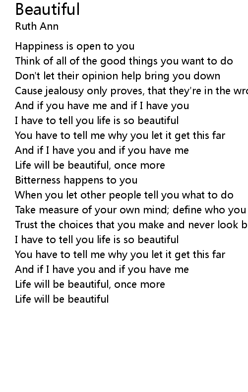 I have to tell you life is so beautiful |