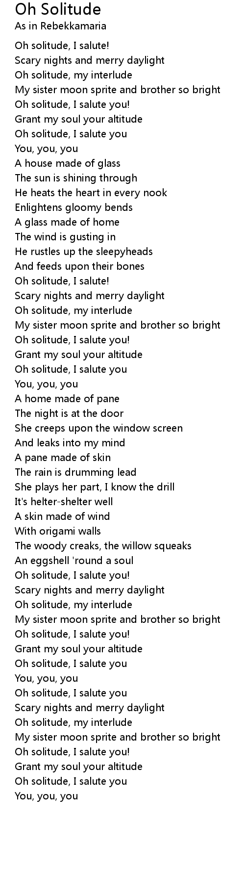 Oh solitude, my interlude |