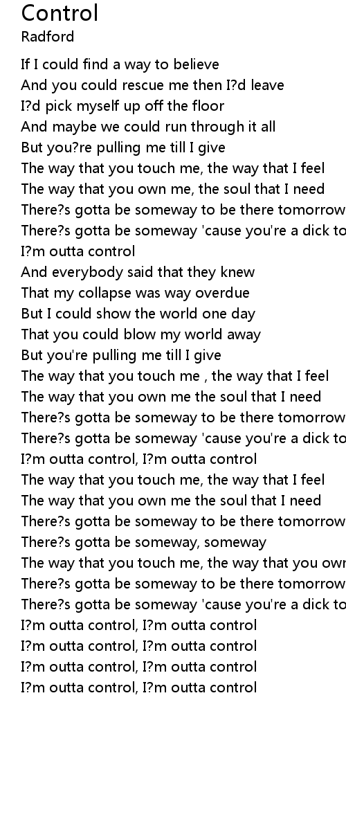 I?m outta control, I?m outta control |
